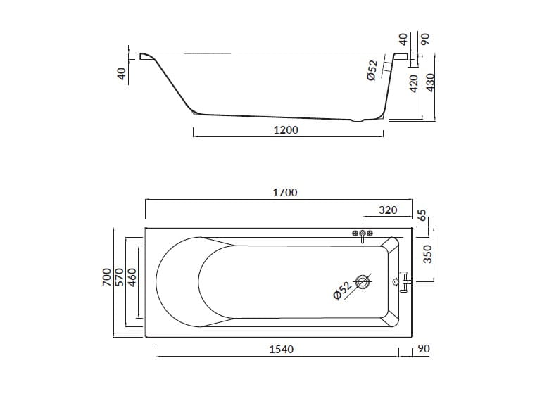 AURORA wanna prostokątna 170x70 MOBI