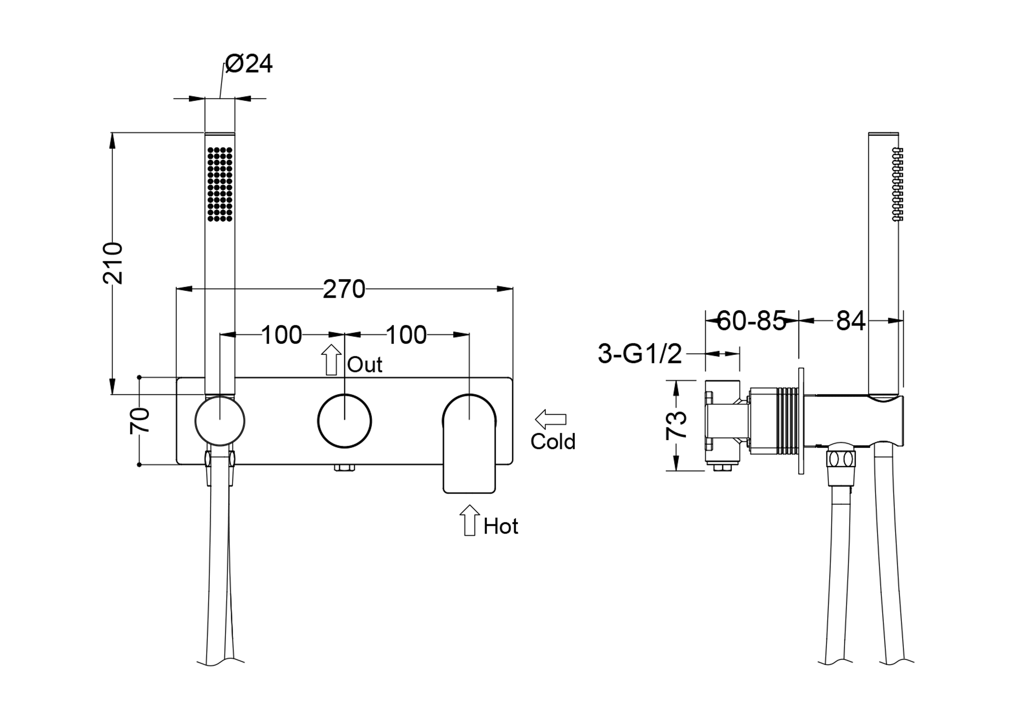 HORIZON COPPER BRUSHED Bateria podtynkowa dwu-funkcyjna typ 2.0 MOBI
