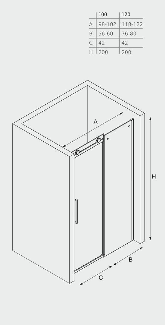 Zakres regulacji: 1180mm- 1220mm, wysokość: 2000mm