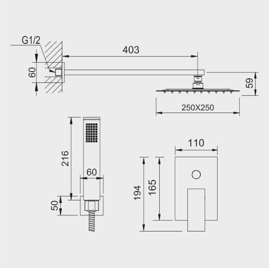 Zestaw natryskowy podtynkowy dwufunkcyjny
